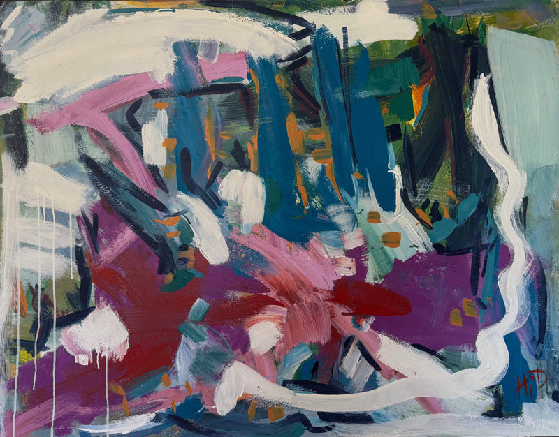 Playing the Learning Curve is a framed abstract acrylic painting on canvas, 36 x 48 inches, capturing growth through movement and layered texture. Directional marks and evolving forms reflect experimentation and progress in real time. This contemporary abstract piece celebrates the beauty of process, making it an inspiring statement for creative and modern environments.